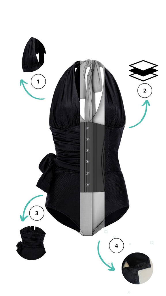 Yollanda Noir — The Heritage Corset Swim Bodysuit